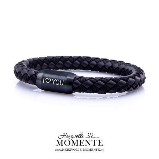 Armband mit Gravur - Leder geflochten - schwarz