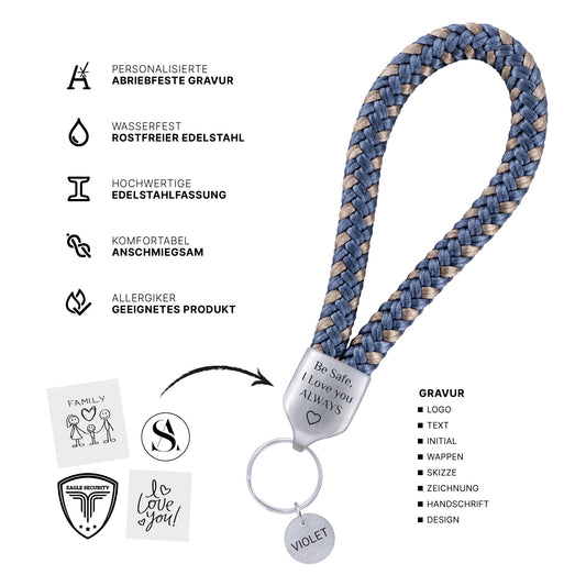 Schlüsselanhänger mit Gravur - Segeltau Blau-Weiss
